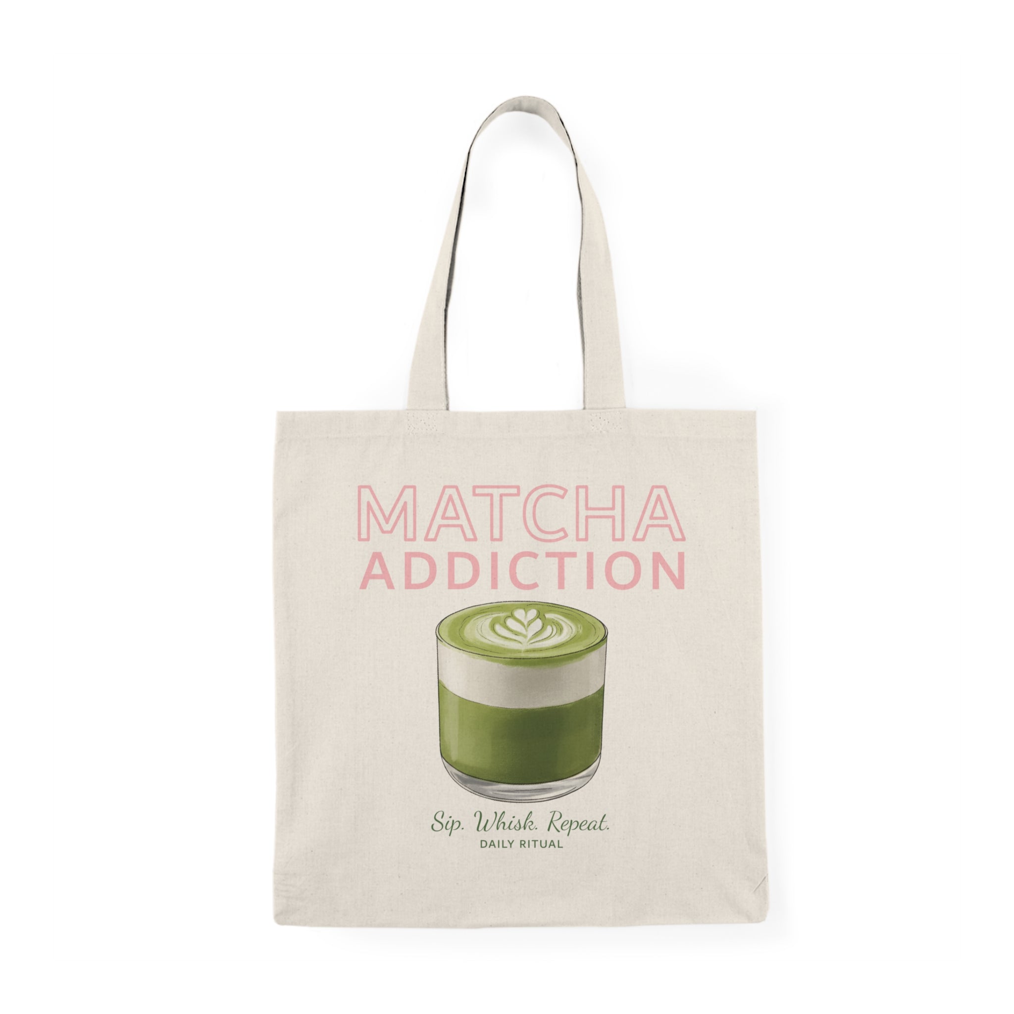 Deze schattige tote bag is de perfecte must-have voor elke matcha-enthousiast, met een uniek design dat jouw dagelijkse ritueel uitdraagt: "Matcha Addiction, Sip, Whisk, Repeat". Het is de ideale, duurzame tas die stijl en je favoriete lifestyle-drankje combineert.